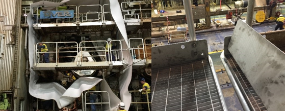 图穆特的旧系统设计不佳,这意味着需要用起重机将大块走道吊到地板上才能更换压毡。这一过程不仅使更换毡子变得缓慢,而且危险,在站台上行走时必须使用安全带。