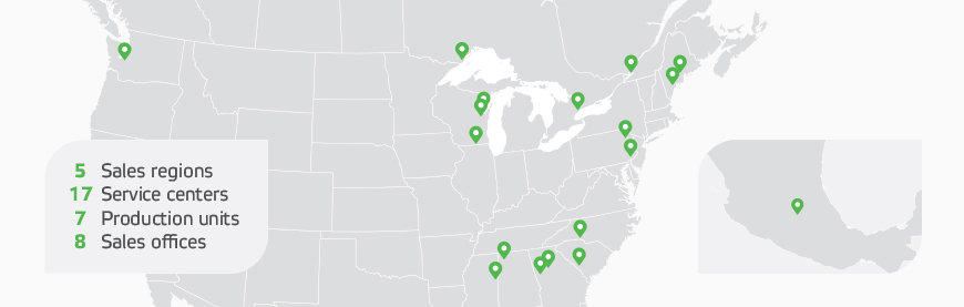 Valmet,北美支持纸浆,纸和能源行业,拥有1,334名员工,在美国,加拿大和墨西哥的18个服务,生产和销售单位网络。
