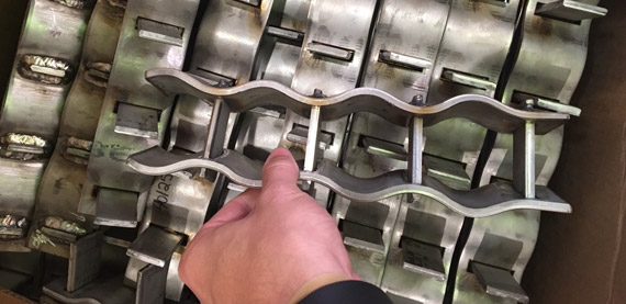随着时间的推移,与烟灰吹和一般锅炉操作相关的扩展,收缩和振动可能导致锅炉中对流通过的各个区域中的管道未对准和弯曲。这可以使管易受侵蚀或腐蚀损坏的管道,以及产生对这些管的长期可用性有害的传热失调。不正确的管对准也可以有助于锅炉污垢和脱水损失,导致风扇功耗增加,甚至可能达到锅炉停机时间。 管对准条已被证明是一种成本效益的手段,可以在其适当位置保持未对准和弓形管,从而避免可能对锅炉操作产生不利影响或缩短管道的使用寿命的问题。 Valmet制造了管对准或“手铐”组件,适用于所有类型的锅炉和锅炉环境。因为我们是电力行业管屏蔽的领先供应商,我们广泛的高温材料库存和管半径模具套装便于生产几乎任何手铐组装装置。这可以在符合您要求苛刻的中断计划的时间范围内完成。 |