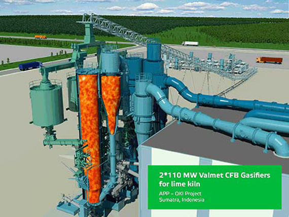 维美德交付了两架生物质气化炉OKI纸浆造纸厂在印度尼西亚南苏门答腊的纸浆厂项目。气化炉采用循环流化床技术,每个气化炉的容量为110兆瓦。