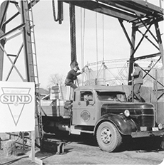 回到过去的日子丝光的装载运输设备到智利Sunds Verkstader AB 1956年。 |