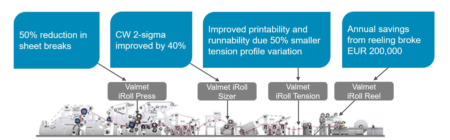 「ドイツの塞佩阿尔费尔德制纸工场では,iRoll硬度プロファイル制御がバルメットオートメーションの多変数プロファイルコントローラーと各グレードの最适制御戦略に适用されたため,以前の数値と比较してワインダの损纸が80%少なくなり,收益收益性が上しました。“