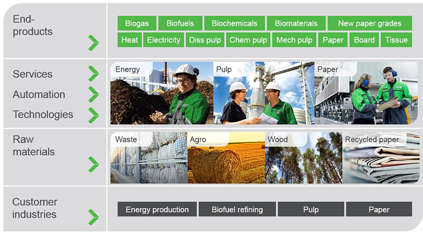 バルメットのミッションは,再生可能な資源を持続可能なものへ変換させることです。これは,バルメットの技術とサービスでお客様が再生可能な資源から持続可能な製品を生産することができるようにする,ということを意味しています。