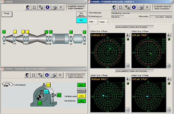 尽管区域热是电站的第一要务,汽轮机振动监测也很重要。“轴承频率是我们最关注的,例如在Keljonlahti,非常长的涡轮机有8个轴承,在不同负载和热膨胀下的振动可能是监测负载的50%,”霍特说(图3),“当启动和增加,特别是在维护之后,我关注趋势。对于新涡轮,制造商在预热期间推荐了一个特定的rpm,恰好有一个非常高的共振峰,系统允许我们轻微改变,以更平稳的运行。”当提高或降低被称为博德图的工具时,霍特可以检查每个轴承室的轴行为。这对于只有套筒轴承的涡轮机尤其重要,不像泵一般使用滚子轴承。