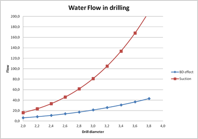 水流量通过钻孔直径,所有其他因素恒定。