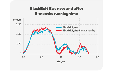 新黑带E在1200kn /m负载下运行6个月后的力曲线。