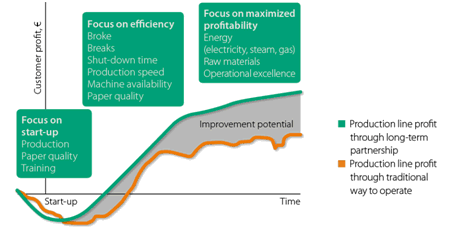 瓦尔麦特公司的性能的协议是一个工厂范围内的发展计划,旨在完善客户的生产线。遵循这种系统化的开发方法,维美德提高并保持了客户的竞争力。之前的合作协议主要集中在造纸厂,规模要小得多。有了新的方法,重点已经扩展到一个新的更大的工厂范围的视角。