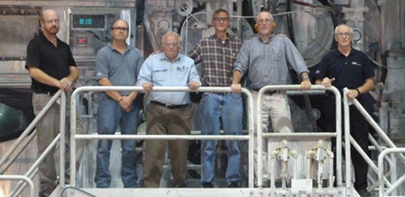 满意的斯帕迪代表在PM 3前面。从左边,弗兰克·马古恩,杆Guillow,迪克•福斯特,格雷格·黑尔,戴夫摩尔和卡米尔Chamberland。