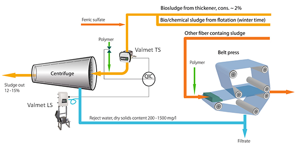 Riuttanen评论说,如果离心机废液的固体含量增加,Valmet LS可以立即显示。该系统连续测量废液中的固体含量和空气体积指数,这表明聚合物可能过量。废液中固体含量过高会导致大量悬浮固体循环,需要通过工厂进行再处理。“可以立即采取纠正措施,以保持滤液清洁。废水处理厂允许磨粉机运行,内部负荷对废水处理厂的运行非常重要,”riutanen说。