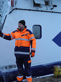 队长蒂莫·麦克拉正在准备在寒冷的1月的一天从科特卡前往库特萨洛。在之前的暴风雨中溅到甲板上的水已经形成了一层厚冰,必须在乘客到达之前将其清除。Mäkelä站在甲板上观察出发准备工作。在这个特殊的半小时航程中,这艘船将搭载十几名乘客和几辆全地形车,这是群岛居民常用的交通工具。