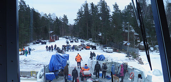 Timo Mäkelä平稳地驾驶着船只穿过冰雪覆盖的航道,到达公海,进入另一条通往Kuutsalo码头的狭窄航道。沿着狭窄的通道前进需要精确和大量的专业知识。