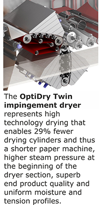 革命OptiDry双胞胎撞击式干燥技术提供了从根本上减少机器长度的可能性,从而节省了施工工作;然而,它也可以用来增加体积,节省原材料,减少纸张重量。