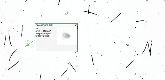 从Valmet FS5最初的高清到超高清光学的飞跃使更小的颗粒可见。被测粒子的最小尺寸接近1 μm。这种准确性可以很好地从木质纸浆中识别不同的细颗粒。然而,光有光学测量能力是不够的。木质和植物性纸浆还含有纤维以外的其他颗粒(植物学家称之为管胞细胞),如血管细胞、薄壁细胞等,它们通常非常不规则。试图根据尺寸、透明度和圆度等固定参数来识别这些粒子,往往会导致错误检测和检测到不感兴趣的属性。Valmet FS5内置了一个独特的基于神经网络的功能,称为Teach Tool。有了这种直观和易于使用的功能,可以教分析仪通过用户输入希望测量的颗粒类型来识别不同的非纤维样颗粒。