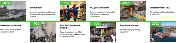 2001年,Valmet(当时的美卓纸业)投资了一台纸浆干燥试验机,安装在Inkeroinen纤维技术中心。现代化项目为更高的容量、新等级、效率提高、能源节约和操作员安全发展等提供了更好的能力。它还在2011年和2018-2019年进行了更新,以使用最新的湿端技术进一步开发该位置。