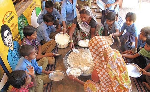 在邓加尔普尔当地学校吃午餐