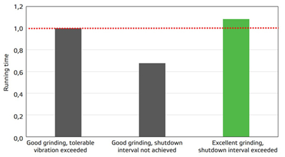与轧辊的研磨质量有关。这也意味着在安全的振动水平下实现了计划的停机间隔。