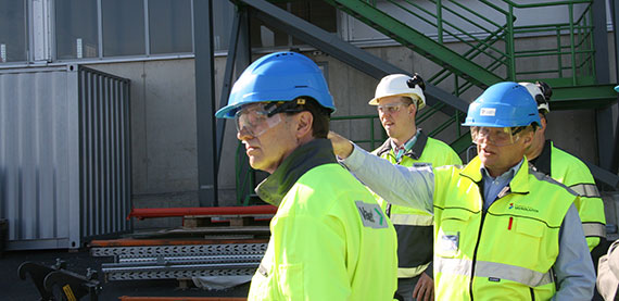 Tammervoima Oy和Tampereen Sahkolaitos Oy的开发总监米卡Pekkinen(右边第二位)指出,垃圾焚烧可降低对化石燃料的需求,减少能源生产对环境的压力。图中另外两位是来自维美德的欧洲- 中东- 非洲地区自 |